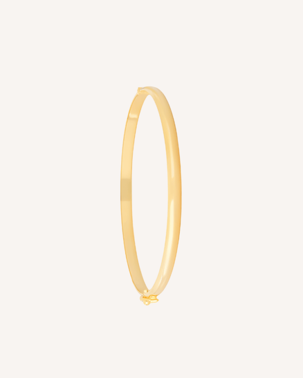 Bracelete liso abaulado ouro 18k, com fecho refinado, ideal para compor looks tanto no dia a dia quanto em ocasiões especiais. Versátil e atemporal, combina perfeitamente com pulseiras ou relógios, criando composições elegantes.