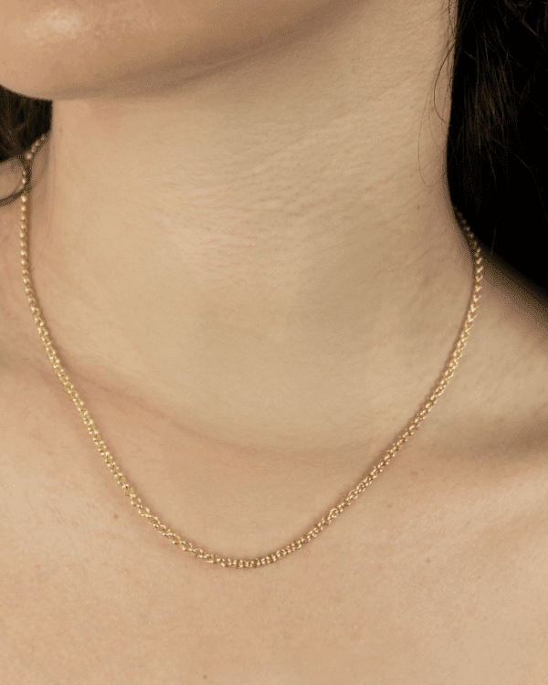 A sofisticação atemporal dos elos portugueses entrelaçados em uma corrente clássica. Esta peça é a expressão do luxo cotidiano, um acessório que combina tradição e modernidade para realçar o seu colo com um brilho inconfundível. Essencial e marcante, é a joia perfeita para compor looks que vão do básico ao elaborado, sempre com um toque de elegância.